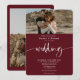 Modern elegant, enkelt rött burgundi och vitt skript i bröllop med 2 foton.
