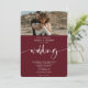 Modern elegant Red burgundy bröllop-skript foton Inbjudningar