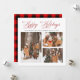 Modern Elegant Red Script Glad helg 3 Photo Julkort