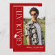 Celebrate your graduate in timeless, elegant style with this modern red and white graduation invitation. Set against a stylish red background, the design features trendy white serif “GRADUATE” typography running vertically down the side, creating a refined focal point. A stylish graduation cap icon sits above the “R,” while the flowing tail of the letter transforms into a sleek tassel—leading the eye to a standout photo of the graduate.