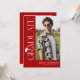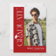 Fira din examenkandidat med tidlös, elegant stil med denna moderna röda och vita examensinbjudan. Mot en stilren röd bakgrund har designen trendig vit serif-typografi med ”EXAMEN” som löper vertikalt ned längs sidan och skapar en förfinad fokuspunkt. En stilren examensmössa sitter ovanför ”R”, medan den flytande svansen på bokstaven förvandlas till en snygg tofs – som leder ögat till ett iögonfallande foto av examenkandidaten.