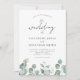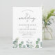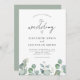 En modern bröllopsinbjudan med enkel design, vattenfärg eucalyptus greenery accents elegant stil calligraphy och sage färg.