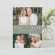 Med den här snyggten kan du berätta ditt bröllop-datum och spara datumkortet med hjälp av ett modernt foto. Utformningen innehåller tre av dina favoritfoton av förlovningen med "Spara datum" i vit serif och skript typsnitt med sidbakgrunden (eller färg efter eget val). Anpassa det minimalistiska spara datum meddelande genom att lägga till namn, datum och bröllop. Kortet återgår till en solid sage grönt-bakgrund. Det enkla spara datum meddelande är perfekt för alla bröllop-teman.