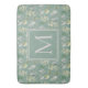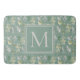 Vackert, elegant och modernt botaniskt badmatt med ditt monogram/början på en bakgrund av grönt och silver löv och löv.