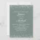 Modern och elegant bröllop bjuds in i sage med silver glitter och ett kursivt skript.