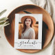 Gratulera till student resultat med vårt moderna Elegant Script 2023 Studenten Photo Announcement Card. Det här snyggten har ett modernt skriptteckensnitt och ett anpassade fotoområde som visar ditt favoritminne i studenten. Perfekt för högskoleexamen eller högskoleexamen är detta meddelande ett underbart sätt att de spännande nyheterna med nära och kära. Elegantens utformning kommer säkerligen att imponera och ge ett varaktigt intryck på mottagarna. Beställ nu att du skapar ett personlig studenten-annonskort som säkert kommer att omhuldas av alla som tar emot det.