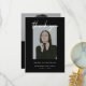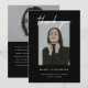 Modern Elegant Script 2-Photo Graduation Party Thank You Card. Customize this minimalistic and modern, black and white graduation thank you card with 2 photos, graduate's name, school, year of graduation, and personalized thank you message on the back.