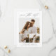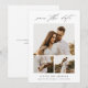 Ett modernt elegant skript 3 fotoskollage spara datum-kort med en enkel modern grid med 3 bilder på framsidan. Baksidan har text för ytterligare detaljer. Klicka på redigeringsknappen för att anpassa denna design med dina foton och detaljer.