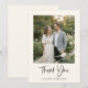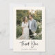 This folded black and white cream thank you note card features a favorite wedding photo paired with modern script lettering and the couple’s names for a simple, personal way to thank guests. The clean layout highlights your photo while creating a timeless keepsake from your wedding celebration. It’s perfect for thanking friends and family for their gifts, support, and for sharing your special day. A beautiful choice for newlyweds sending heartfelt notes after the wedding.
