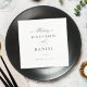 Modern Elegant Script Classic Bröllop Napkins har ett unikt calligraphy-skript parat med snyggt type. Systemet för svartvit färg är perfekt för alla evenemang, formella eller avslappnader.