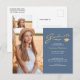 Modern Elegant Script Damblå Guld 2 Foto Examen Vykort