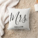 Mrs Modern Elegant Script Monogram Bröllop Throw Cushion. En enkel och elegant kuddekudde som bär på mrs med din anpassningsbar gift efternamn. En underbar gåva till ett nyligen gift par!