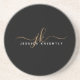 Personligens moderna sandsten underlägg med ett enkelt, handskrivet kalligrafskript i elegant initialer eller monogram och namn i guld och vitt mot en redigerbar svart bakgrund för en snyggt eller professionell. ÄNDRINGAR: Ändra bakgrunden till färg, välj en formaterad bildbakgrund eller ändra textteckensnittet stil, färg, storlekt och placerat genom att klicka på REDIT i avsnittet PERSONALIZE för ett anpassad design. ASSISTANS: Om du vill ha hjälp med designändringar eller anpassning, ändra storlek på färg, flytta designen till en annan produkt eller om du vill samordna produkter kontaktar du designern INNAN ORDERING via Chattan Zazzle MESSAGE nedan eller e-post makeitaboutyoustore@gmail.com.