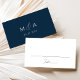 Modern bröllop placerar kort med en marin kalligrafiskript på framsidan med vit bakgrund. Baksidan av platskorten har ditt monogram initialer och ditt bröllop-datum som visas nedan med vita bokstäver på en marin bakgrund. Elegantens manuskort är perfekt för moderna bröllopsmottagningar, repetitionsmiddagar och andra speciella evenemang.