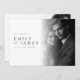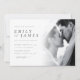 Gå in i en värld av tidlös elegans med vår moderna Elegant-fotobröllopsinbjudan. Designad för det moderna paret blandar den här inbjudan på ett vackert sätt contemporaryns estetik med en klassisk monokrom palett.