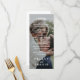 Minimalistisk bröllop-meny med en enkel design som innehåller ord-menyn i ett handskript med elegant och dekorationer tillsammans med namn i vitt över bild. Dessa moderna och chic bröllop-menyer samordnas väl med alla typer av bröllop.