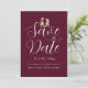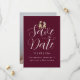 Modern elegant foto bröllop spara datum med Whimsical Dinosaur Tema bröllop "Save the Date" burgundy och elfenbenstorn Kort Funny T-Rex dinosaur Bride & Groom Bröllop Announcement Gör bröllop verkligt oförglömligt med det här lekande dinosauyrtematiska "Save the Date"-kortet med en charmerande T-Rex-brid och groom i mjuk vattenfärg stil. Designat för roligt-kärleksfullt par, blandar detta unika kort det vimiska romantik med modern elegans, vilket parar den berömvärda dinosauriillustrationen med ett skript för snyggt av elfenbensgrädde och modern typografi på en rik romantisk burgundisk bakgrund för ett minnesvärt första intryck. Anpassa enkelt ditt foto med ditt namn och bröllop-datum med hjälp av Zazzles enkla redigeringsprogram verktyg och skapa ett viktigt meddelande som dina gäster kommer att skicka till kärlek. Perfekt för dinosauer älskare, Jurassisktemerat bröllop eller par som vill lägga till en lätt vrid till sitt bröllop-kontor. Det ursprungliga T-Rex-teckningen av konstnären och designern Catherine Sweetman är endast tillgänglig på Zazzle, och skapar ditt unika datum som din kärlek-artikel.