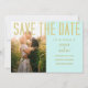Unikt bröllop-foto sparar datumet. Bakgrund för lätt mynta (turkos). Guld (guld är inte guld utan färg). Modern, strömlinjeformad teckensnitt. Helt unik, enkel och elegant. För sommaren bröllop, vår bröllop eller något slags modernt elegant bröllop.
