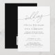 Vi presenterar en bröllopsinbjudan som fångar essensen av tidlös sofistikering med en touch av minimalistisk elegans – den Moderna Eleganta Skrift Minimalistiska Bröllopsinbjudan. Denna utsökta pappersvara är designad för att göra ett statement om förfinad stil och sätta den perfekta tonen för din speciella dag.