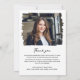 Detta tankeväckande minneskort är ett hjärtligt sätt att hedra minnet av en älskad och uttrycka tacksamhet för stödet från familj och vänner. Framsidan har ett vackert foto av individen i ett penseldrag ram som ger en mjuk, konstnärlig beröring. Den redigerbara frasen "i kärleksfullt minne" skrivs elegant ovanför din älskade namn och data i livet, och skapar en enkel men meningsfull hyllning. På baksidan av kortet finns ett andra foto och ditt personliga tack är ett meddelande som gör att du kan uttrycka din uppskattning för den vänlighet som visas under en svår tid. Med sin varma utformning och sina personliga beröringspunkter fungerar detta kort som en varaktig keepy för att hedra minnen och fira ett liv fyllt med kärlek.