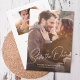 Meddela ditt kommande bröllop-datum med det här enkla datumet för att spara elegantens handskriftsskript. Utformningen erbjuder två foton: ett lodrät bild längst fram och ett litet vågrät bild på baksidan. På baksidan finns anpassningsbar för mer information om bröllop.
