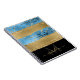 Den moderna lätta metallblåa skrivaren i penseldrag med guld, glitter, svart och adorberad med ditt skript monogram, först namn och början.