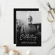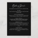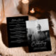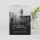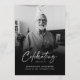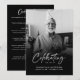 Detta minneskort är designat för att hedra och fira en älskad persons liv med värme och värdighet. Framsidan visar ett hjärtligt fotografi som fångar ett glatt ögonblick, med orden "Firar minnet av" i en elegant skrivstil, följt av den avlidnes namn och levnadsdatum i en ren, modern typsnitt. Bilden, tillsammans med den festliga hälsningen, sätter en positiv ton för att minnas den enskildes liv. Baksidan av kortet presenterar en "Ordning för ceremonin" i vitt på en snygg svart bakgrund för enkel läsbarhet. Denna del innehåller förslag på hur ceremonin kan struktureras, från välkomnandet av deltagare till lovtal, festliga aktiviteter och avslutande tankar, allt utformat för att styra evenemanget på ett sätt som speglar den persons anda som minns. Detta kort är ett vackert sätt att hedra ett liv