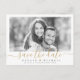 Modern manuset "spara datumet" i guld färg, med ett pars foto, enkla och elegant. Underbart fotosparande av vykort för modern bröllop och andra evenemang. Om du väljer "Klicka för att anpassa ytterligare" i avsnittet "Anpassa den här mallen" kan du ändra färg i skriptet så att det matchar fotot och justera fotots position. Visa alla matchande delar i samlingen