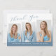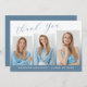 Den här moderna elegant 3-fotokortet "Tack" i studenten, har inslag av modern text som är sammanfogad med kalligrafiskript för elegant. Dina gradfoton visas på kortets framsida medan kortets baksida ger personligen textutrymme för ett tackmeddelande eller kan lämnas tomt om du vill lämna ditt meddelande. En vit övertoning med snyggt tonas ned till en vacker dammblå färg eller anpassar den blå till en färg efter eget val.