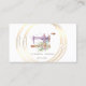 Det stilistiska affärskortet i professionell mode med vackra syningar av maskin med blommor och en cirkel i elegant guld på vita bakgrunder. Lägg till ditt namn och kontaktuppgifter för att göra ett varaktigt första intryck.