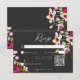 Vårt svarskort för svart kol i bröllop med en QR-kod med en slående bukett av sommarens vildblommor i rosa, magenta, grädde och gult med lush grey är ett modernt mästerverk. Den skarpa vita texten tillför lite elegans, medan bakgrunden till mörken skapar en dramatisk bakgrund för din speciella dag. Den här utformningen är en häpnadsväckande blandning av modern elegans och tidlös romantik. Skapat av Farmhouse Press.