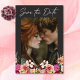 Vårt svarta träskkort i bröllop spara datum med ditt favoritfoto med en slående bukett av sommarblommor i rosa, magenta, grädde och gult med lush grey är ett modernt mästerverk. Den skarpa vita texten tillför lite elegans, medan bakgrunden till mörken skapar en dramatisk bakgrund för din speciella dag. Den här utformningen är en häpnadsväckande blandning av modern elegans och tidlös romantik. Skapat av Farmhouse Press.