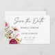 Vårt elegant bröllop sparar datumkortet med en slående bukett av sommarblommor i rosa, magenta, grädde och gult med lush grey, är ett modernt mästerverk. Den här utformningen är en häpnadsväckande blandning av modern elegans och tidlös romantik. Skapat av Farmhouse Press.