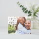 Grattisar på Big News! Att spara datumkorten är det första steget för att ge människor kunskap om dina planer. Den här designen har en modern, elegant stil som passar för foton från fullt färg. Byt ut fotot på framsidan mot ett eget foto och anpassa det ytterligare med ditt eget data och information genom att klicka på knappen "Anpassa det!".