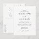 Minimalistiskt, modernt vykort för bröllopsinbjudan med information om bröllop i vita bokstäver med calligraphy-skript accents på en speglad svart och vit bakgrund. Anpassa baksidan av vykortet för chicens bröllopsinbjudan till din returadress, bröllop webbplats, bilder etc. Designad att samordna med vår moderna elegance bröllop-samling.
