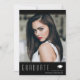 Snyggt studenten-meddelandekort, med en modern text med elegant och professionell. Studenter-fotot på kortets framsida har förbättrats av tunt översatt ramar på översta sidan och grund, medan baksidan av kortet ger personlig textutrymmen för information om studenten och framtida färd. Bakgrunder är svarta med vit text på fram- och regalskuggor av grått och svart på baksidan. Om du vill se fler artiklar som detta kan du besöka min butik här på "www.Zazzle.com/LakeViewCardCo". Tack
