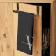 Tjejigt modern elegant svart och grått monogram initial bokstav namnteckning script anpassad personlig kökshandduk. Denna design med ditt förnamn i en vacker handskriven stilisert svansfont typografi (eller kalligrafi) med monogram initial i grått och vitt på svart. Dessa är lätta att anpassa. Fin stilren feminin husvärmningspresent, även för födelsedag, bröllop, mors dag, brudshow och den är för flickan som älskar unika rena minimalistiska saker.
