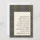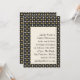 Denna bröllopsinbjudan har en djärv svart bakgrund infattad med en raffinerad gyllene geometrisk blomsterkant. Den centrerade elfenbenspanelen håller typografin ren och elegant och skapar en sofistikerad svart och gyllene bröllopslook. Perfekt för par som planerar en formell kvällsfirande, art deco-inspirerad mottagning eller modern svartbandsevenemang. Den starka kontrasten och tidlösa paletten känns dramatisk men ändå polerad för en ceremoni som gör intryck.