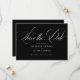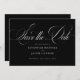 Modern Elegant Script Black and White Save the Date har ett stort, fetstilt skript och en elegant.