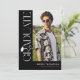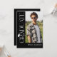 Fira din examenkandidat med tidlös, elegant stil med denna moderna svarta och vita examensinbjudan. Mot en stilfull svart bakgrund har designen trendig vit serif-typografi med ”EXAMEN” som löper vertikalt ned längs sidan och skapar en förfinad fokuspunkt. En stilren examensmössa-ikon sitter ovanför ”R”, medan den flytande svansen på bokstaven förvandlas till en snygg tofs – som leder ögat till ett utmärkande foto av examenkandidaten.