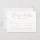 Minimalistiskt, modernt bröllop OSA-kort med ditt OSA-datum, anpassningsbarna accepterar/avvisar formuleringar och måltider. "Vänligt svar" visas i ett terracotta calligraphy-skript. Terracotta-skriptkortet bröllop OSA var designat att samordna med vår Modern Elegance bröllop-samling.