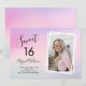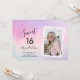 Snygg och kvinnlig Sweet 16 födelsedagsinbjudan med pastellila bakgrund och elegant kalligrafi teckensnitt. Ladda upp ditt favoritfoto.