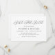 Med vår snyggt och elegant sparar du datumkorten och väljer "Spara datum" i en chic svart typografi som blandar modern kalligrafi med klassisk serif-text. Den här tidslösa svartvita designen är helt anpassade, vilket gör att du kan lägga till namn, bröllop-datum, plats, bröllop webbplats och andra viktiga uppgifter. Perfekt för att ange en sofistikerad ton för bröllop, dessa kort är ett fantastiskt sätt att dina spännande nyheter med familj och vänner. Anpassa den här mångsidiga designen så att du kan skapa en minnesvärd keepy för din speciella dag.