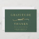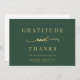 Modern typografibaserad visitkort för företag som läser GRATITUDE AND THANKS men som enkelt kan anpassas till vilken annan helgdag som helst. På baksidan finns utrymme för ett annat meddelande och företagets logotyp. Det här är elegantens grönt och guld.