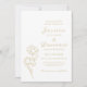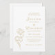 Öka bröllop med denna minimalistiska, moderna, elgant vit och guld inbjudan, med accenter för blommigt i elegant ro. Med en vit bakgrund och eleganta guld-högdagrar utstrålar den här designen tidlös charm, perfekt för en chic och romantiskt firande. Anpassa för en unik beröring på din speciella dag.