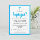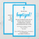 Elegant, modern VUXEN BAPTISM-inbjudan, visar att jag får BAPTIZED plus anpassade. Huvudfärgen är cyanblå. Det finns platshållartext på motsatt sida, som bygger på 2 korintianer 5:17 - ny skapelse i Kristus, och som kan ersättas med ytterligare uppgifter om firande.