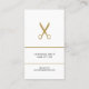 Modern Elegant White Golden Scissors Hair Stylist Visitkort