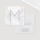 Modern Elegant Vit marble Monogram Square-Affärskort med stort monogram i grått modern sans serif font stil på marble-bakgrund med företagsinformation på baksidan. Perfekt för formgivare, fotograf, mode, konsult och många andra yrken.