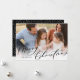 Skicka önskemål till din familj och dina vänner med det här elegantens helgdag-kortet. Ett foto på framsidan, åtföljt av handmålade vita bokstäver och blommönster på baksidan. Det moderna och minimalistiska stil kommer verkligen att låta dina familjefotografier skina.