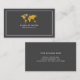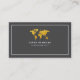 An elegant dark gray contact card... front side: a thin border, a faux gold map of world, with custom name and profession printed in a sans serif white font style; back: lines of text (business name, phone, email and address).